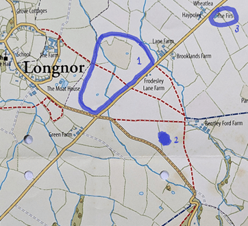 Along this route there are lots of Roman sites: a villa at Acton Scott; marching camps at Strefford Bridge and Upper Affcott near Craven Arms; and a fort at Strefford Bridge. Longnor is almost exactly halfway between Wroxeter and the marching camp at Upper Affcott, which leads some people to believe we were lunch time stop-over.
