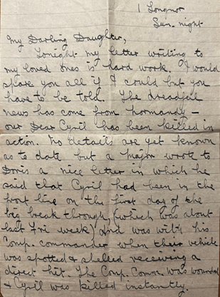 Cyril was the eldest son of Lucy Haycock. She and her second husband, Charles, came to Longnor in 1935 and later ran the village shop and post office. Six of their seven children were in military service during and just after the Second World War.
